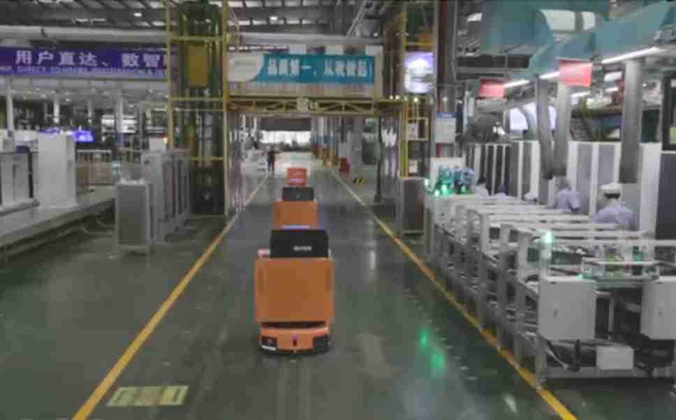 为车载冰箱物流配送打造的智能解决方案,,包含产中物流通过潜伏举升AMR搬运至线边,,,,产后成品物流智能仓储,,流程包含产中物流智能齐套入库,,,,线边安灯叫料AMR智能配送至线边,,,成品入库、、、、出库,,通过无人堆高车机器人,,智能仓储管理替代人工作业管理,,,,实现更高存储、、更高效率、、、、更具柔性化的解决方案。。。。